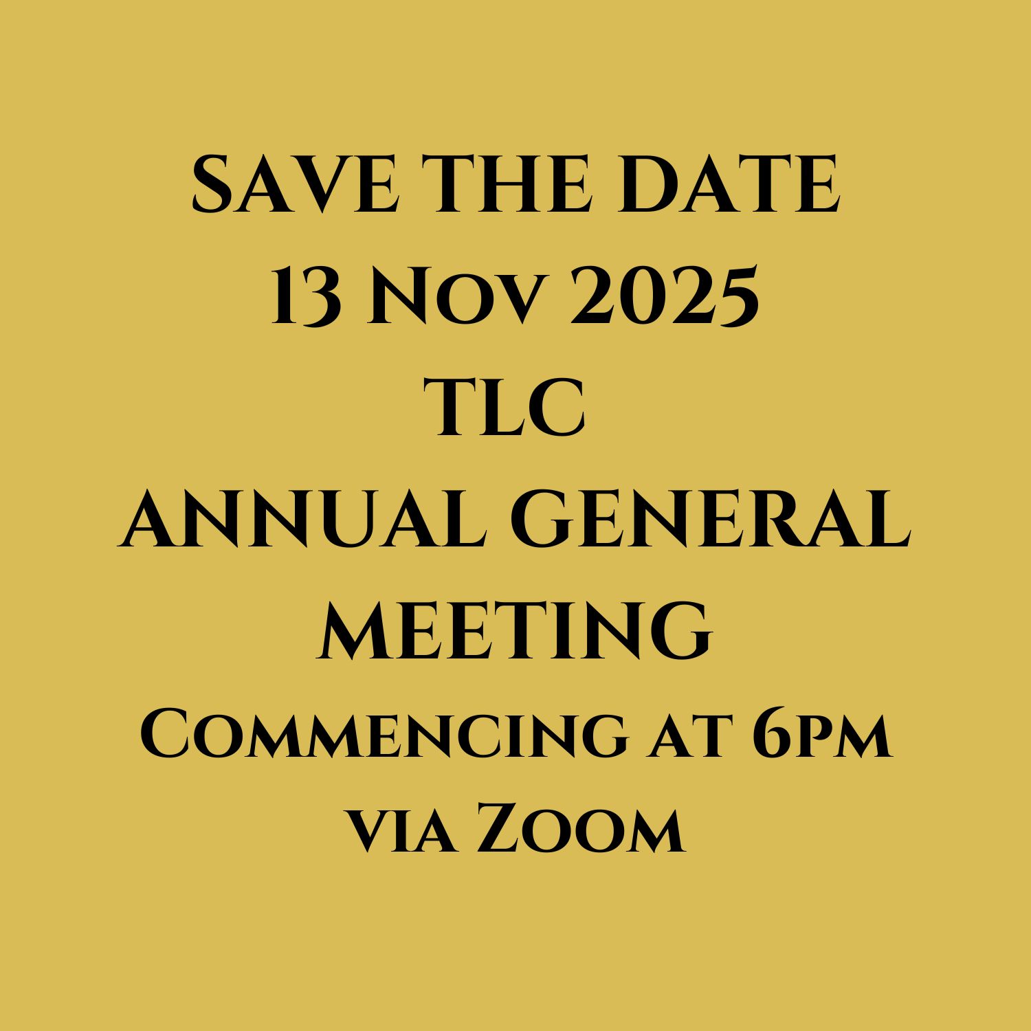 Thursday 13: TLC AGM via Zoom staring at 6pm